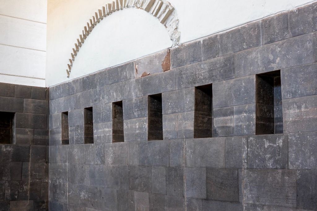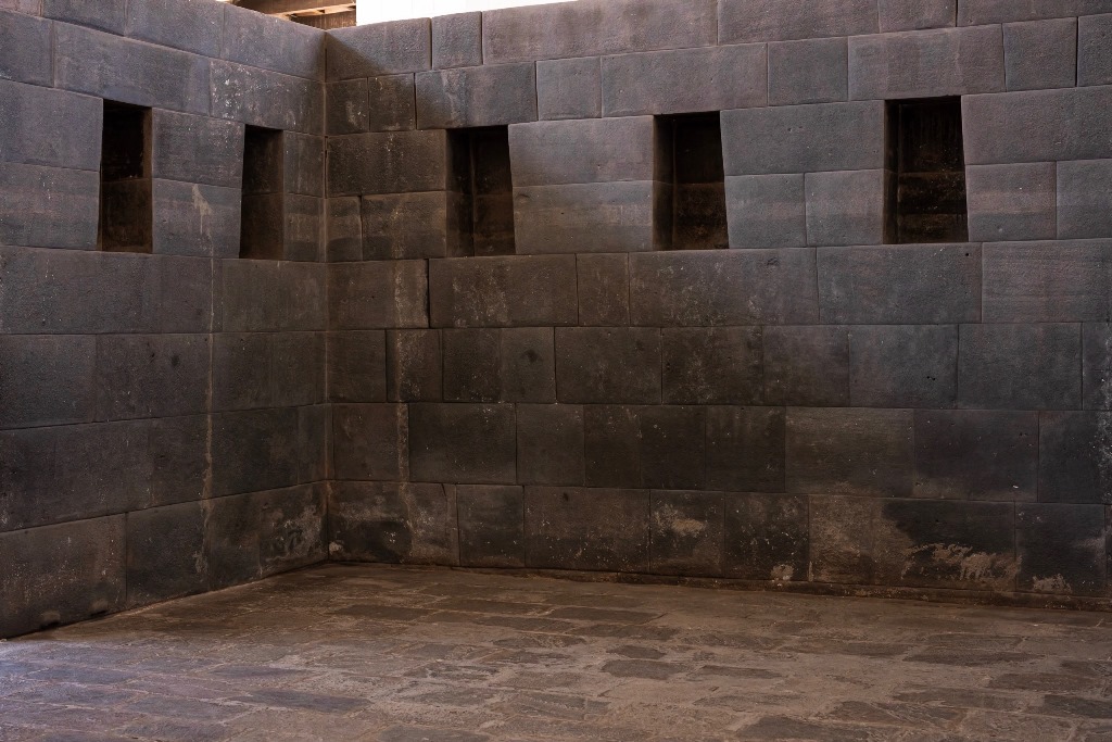 First Image: Coricancha – Sacred Temple of the Incas in Cusco – now it is the Church and Convent of Santo Domingo; Second Image: 3 such rooms filled with gold and 1 room of silver were initially giifted to the colonialists thinking that they would then leave the Inca empire alone… ; Third Image: The Moon Temple Inside Coricancha – the bare alcoves show the empty spots where centuries ago idols of the deities of the Incas used to reside. These walls were painted white with the Catholic imagery by the Spanish (white colored paint remnants can be seen throughout) but a few years ago the paint was washed away because of a storm and the Peruvians realized what was underneath!
