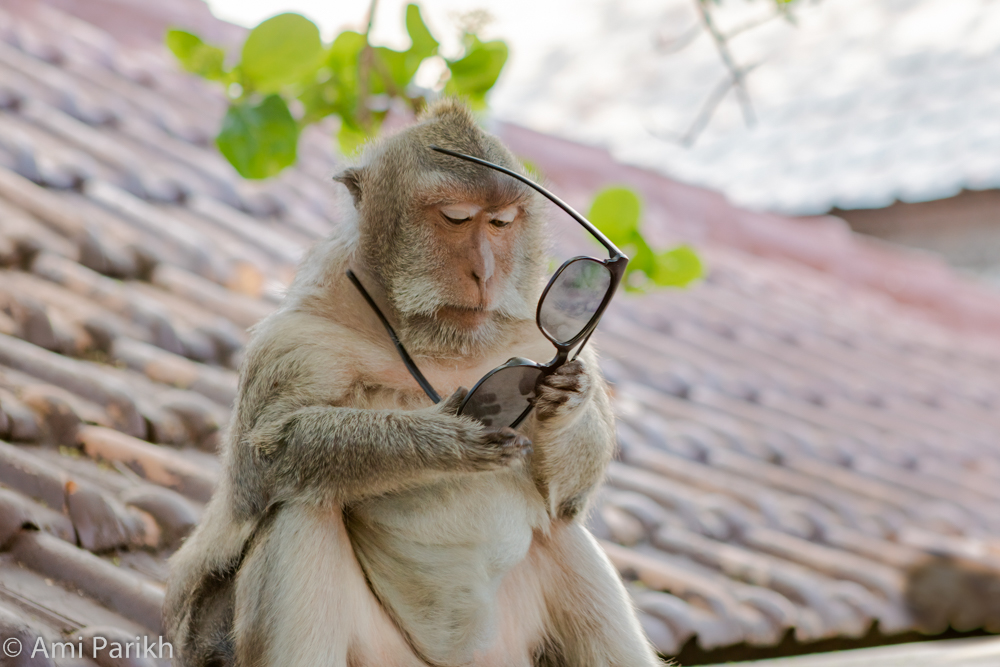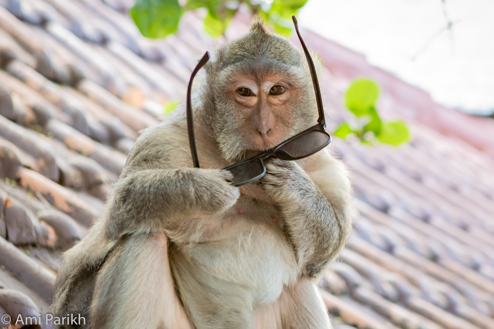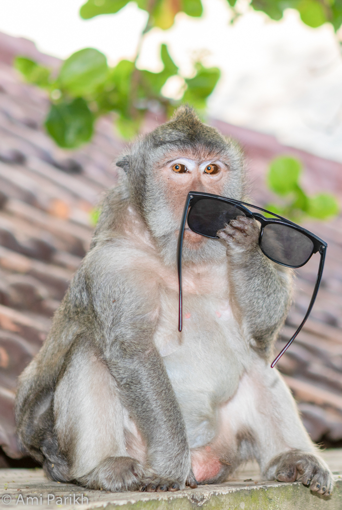 The first such incident happened to me in Bali. I was visiting the famous Uluwatu temple at sunset, when this bugger quietly approached from a nearby roof and grabbed my sunglasses off my head. I shrieked while all the other tourists and my family watched in amusement and were busy clicking pictures ๐Ÿ™‚ The temple priest had to be called and the ape had to be bribed with a treat before returning those back! I was glad to get those back โ€” many are not so lucky, including my husband, who was once deprived of his scientific calculator after his engineering exam when he was resting under a tree in Delhi ๐Ÿ˜€