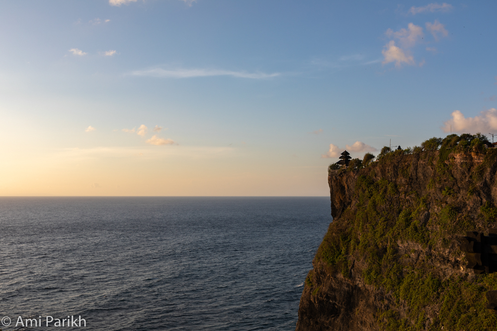 Uluwatu Temple in Bali at Sunset – the temple is at the corner on a cliff
