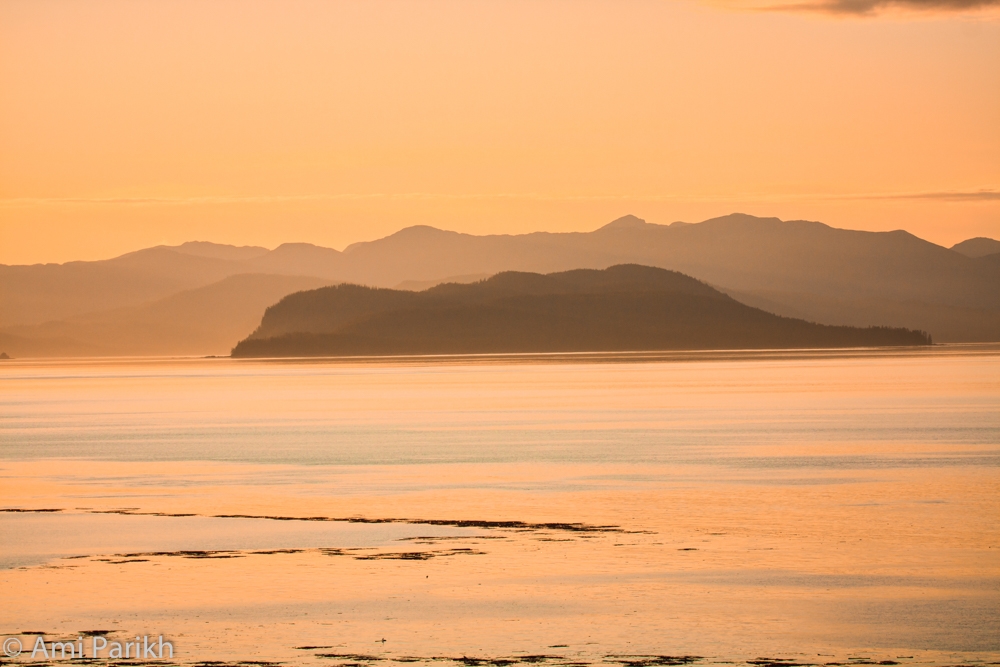 In Alaska, there are beautiful, pristine landscapes waiting to be captured as far as the eye can stretch, but two of my fondest memories are of daily sunrises/sunsets over the blue waters of the Pacific, and my first whale watching tour in Juneau, the capital of Alaska, and one of our ports of call during the cruise.