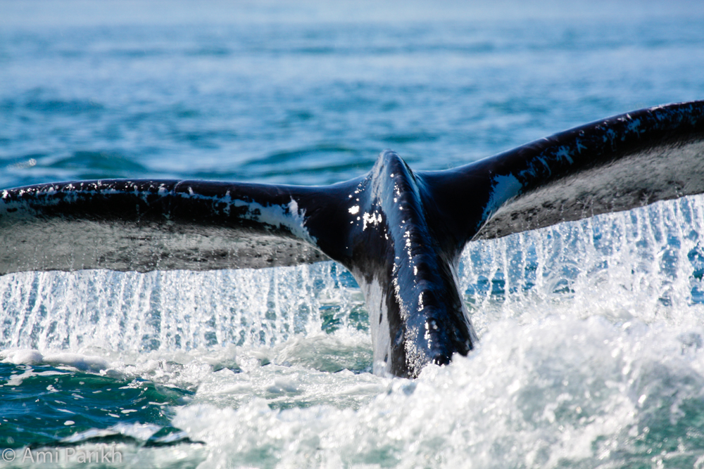 Our boat captain, an experienced sailor, told us that it was against the rules for a boat to approach whales at a distance closer than 30 feet; however, there were no rules if the whales decided to approach us! And it did happen! While I was expecting to see maybe a whale or two, that day we saw dozens of humpbacks playing in the ocean around our boat! There were so many whales nearby that, had they wanted to, they could have in unison easily toppled our small boat, and made a nice meal out of us. In between their playtime, the whales called out to each other, and the sounds they emitted reverberated like cosmic booms across the ocean. We learnt that humpback whales emit a tall spray before they surface โ€” by the end of our tour we had become experts in spotting whales.