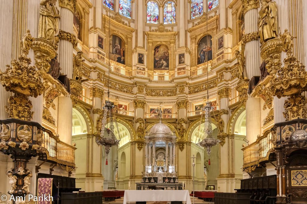 Interior View of the Decorations of the Apsis of the Cathedral of Granada, Spain