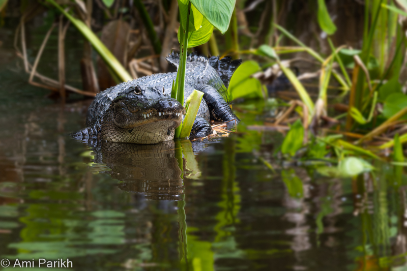 After the North Cypress hike, we stopped by the Oak visitor center and right upfront we saw a dozen alligators lying around in the sun; seemed like a great idea and would have loved to join them but alas, we had a flight to catch to perennially cold Cincinnati. (P.C. Abhi Goel)